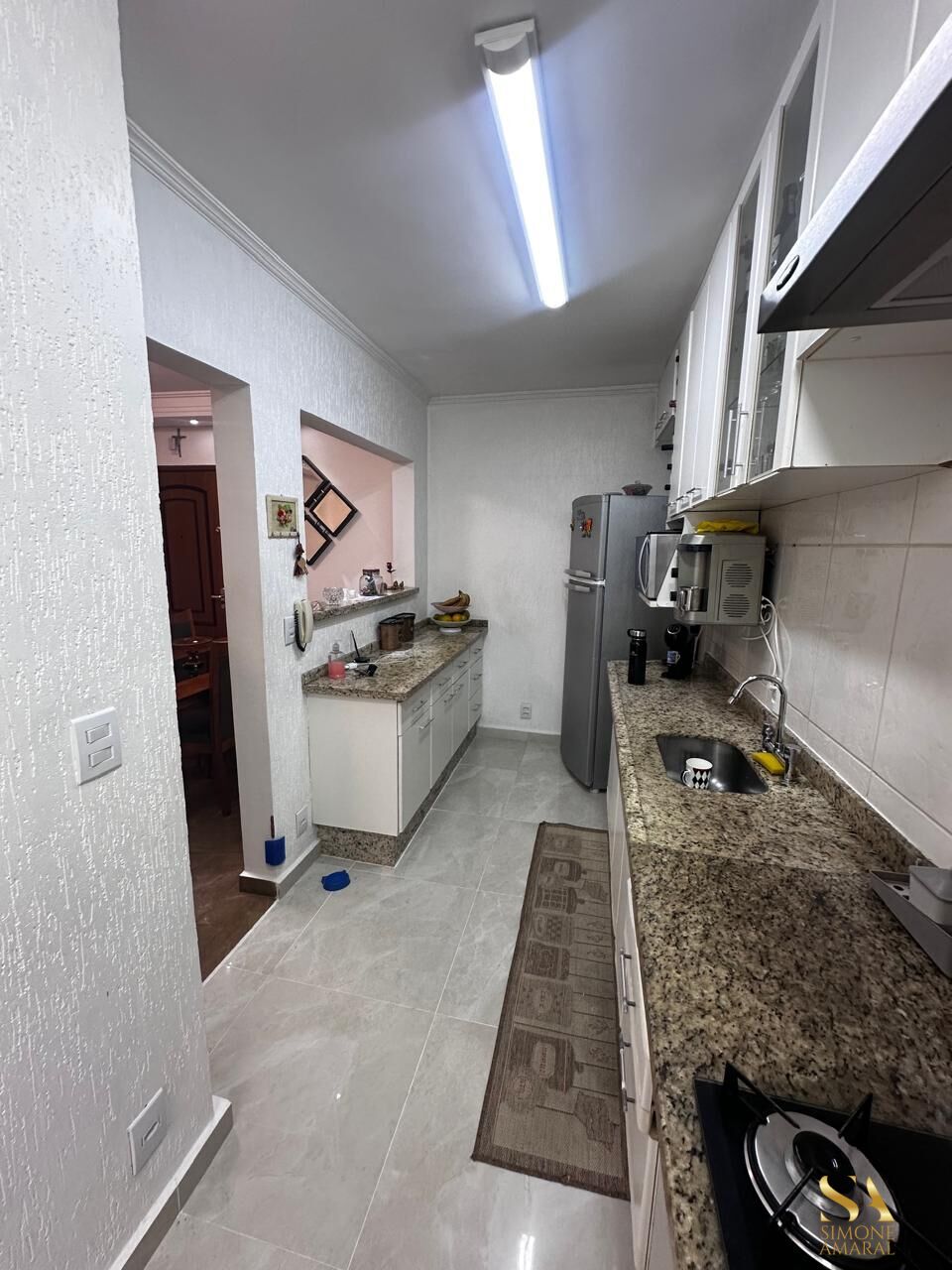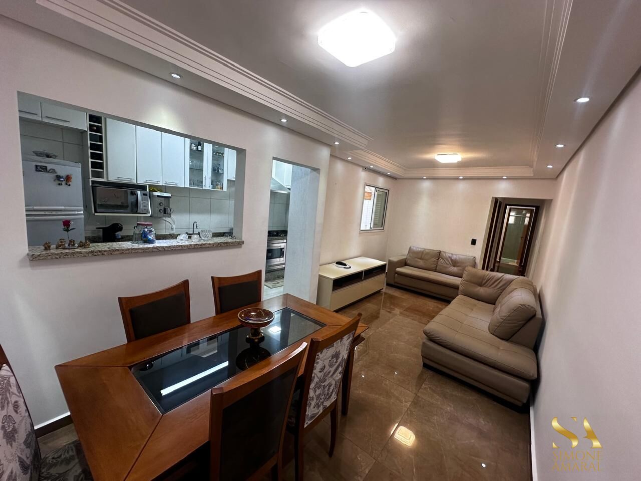 Com 2 dormitórios sendo 1 suíte, sala 2 ambientes, cozinha com planejado, área de serviço com armário e teto retrátil, banheiro com gabinete e box, 2 vagas ótimas 1 antes e depois da escada.
