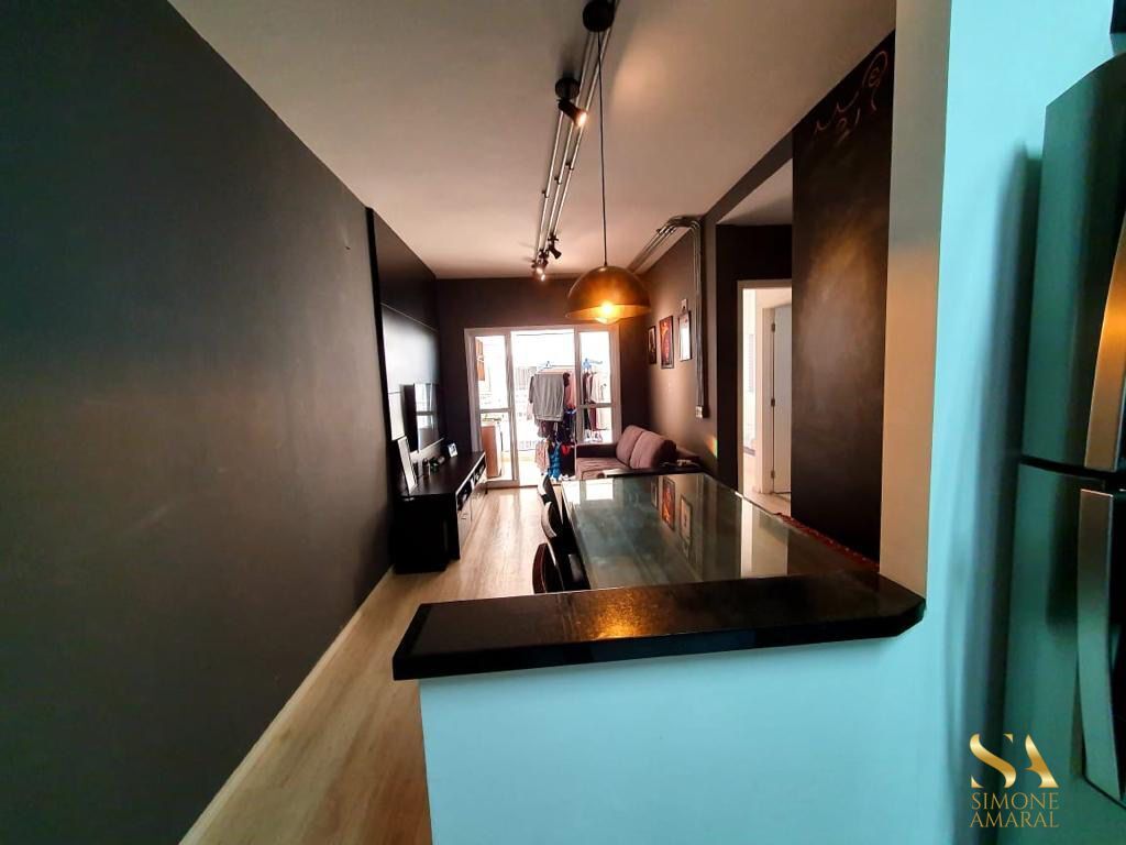 COM 2 DORMITÓRIOS 1 SUÍTE COM PLANEJADOS, COZINHA PLANEJADA COM FOGÃO EMBUTIDO, COIFA, MICROONDAS, SALA 2 AMBIENTES COM RACK, BANHEIRO SOCIAL, VARANDA GOURMET COM CHURRASQUEIRA, 2 VAGAS COBERTAS.