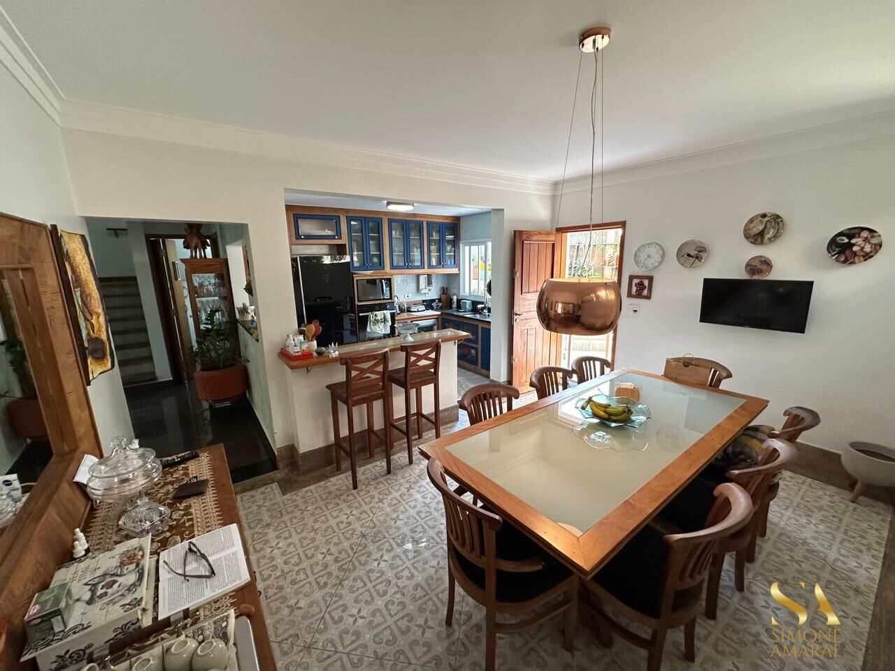 Imóvel amplo com três dormitórios no pavimento superior sendo 1 suíte com closet, banheira de hidromassagem, ar condicionado varanda, 1 suíte na edícula (pode ser escritório), sala estar e jantar com piso nobre de porcelanato, integrada com a copa/cozinha, escritório/sala de TV, área de serviço, vaga para 3 automóveis paralelas, portão automático, 1 banheiros social e 2 lavabos.