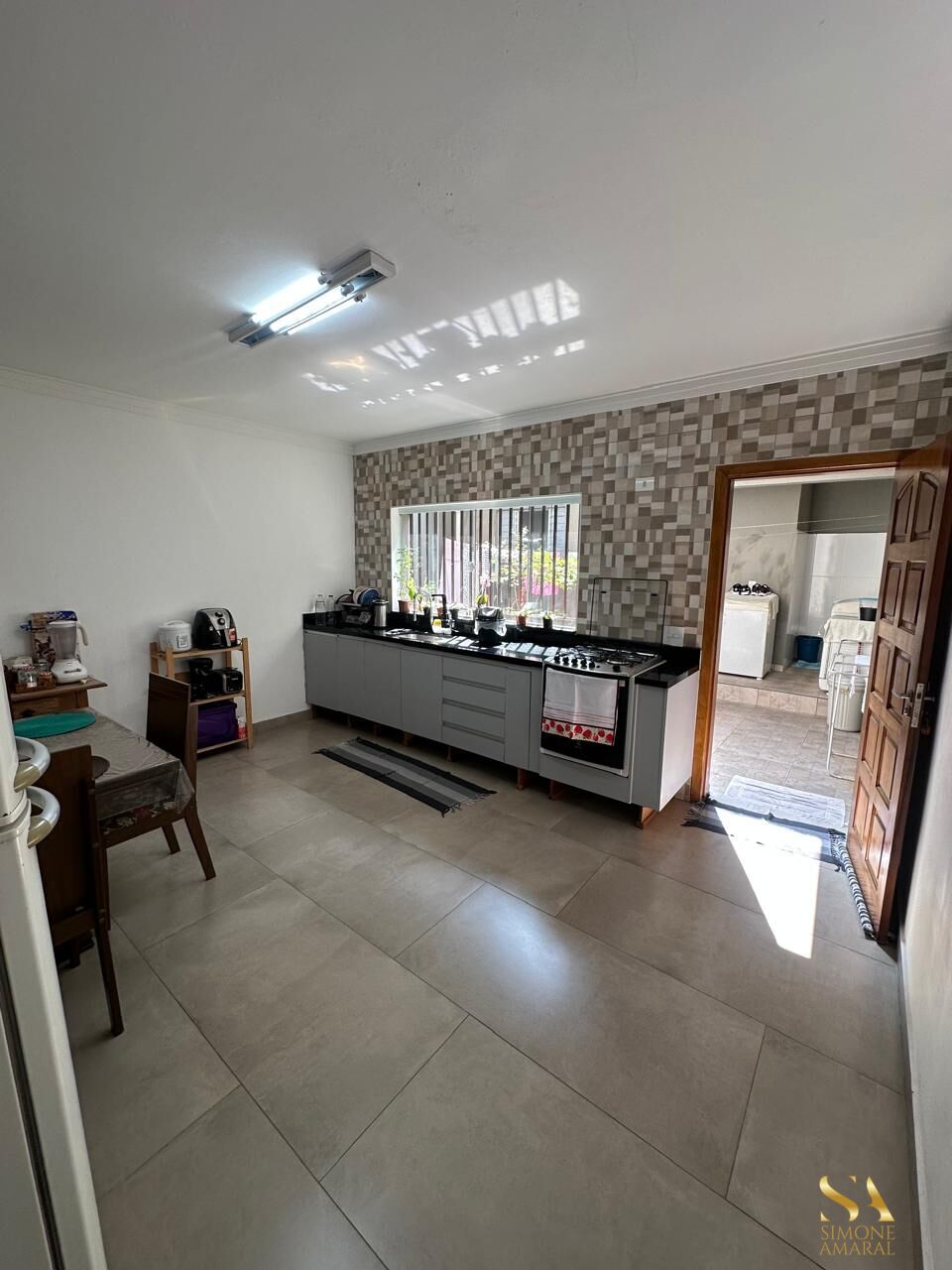 Com 3 dormitórios sendo 1 suíte, sala ampla 2 ambientes, lavabo, banheiro social, cozinha ampla, piso porcelanato, área de serviço, 1 cômodo com banheiro, quintal e corredor lateral, 2 vagas cobertas.